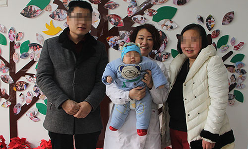 患者二:李艳,多囊卵巢综合症合并输卵管不全梗阻,体态肥胖,两年未孕,吃中药治疗导致无月经,后停止药物治疗,经宫腹腔镜联合应用行多囊卵巢打孔术+输卵管疏通术,术后恢复两个月怀孕,流产,治疗后再孕,宫外孕,经王静医生跟踪治疗后,如愿生下儿子。