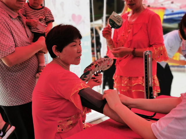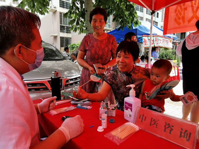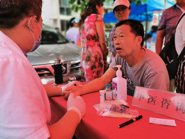 天气炎热,看着在烈日下排队等待义诊的居民,医护人员为大家准备了矿泉水和小扇子,主任耐心的为大家讲解中医调理和预防保健养生知识。